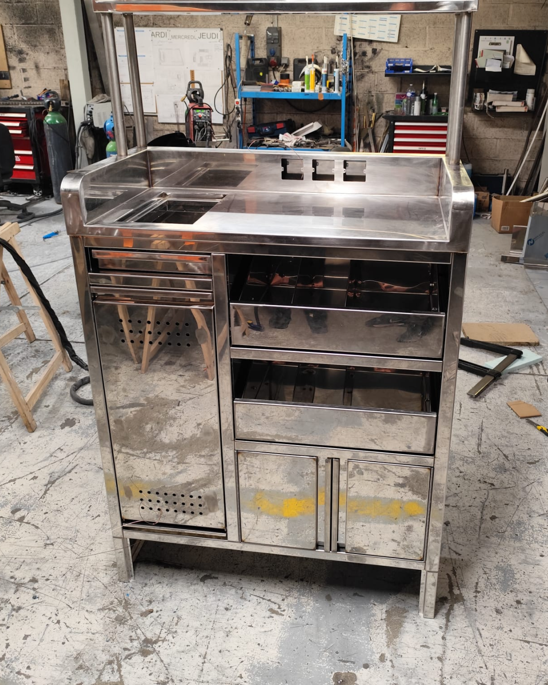 Découvrez les réalisations Paris Inox : bars, équipements inox, plans de travail, vitrines et projets sur mesure conçus pour les professionnels du CHR et les particuliers.